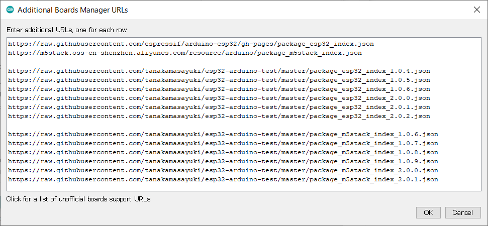 https://raw.githubusercontent.com/tanakamasayuki/esp32-arduino-test/master/package_m5stack_index_2.0.2.json